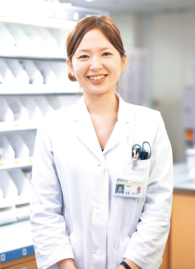薬学を学びたいと強く思っていた時、近県の北陸大学に薬学部があることを知り進学を決めました。入学当初は周りの学生との学力の違いに圧倒され、授業についていけずに苦労しましたが、授業は必ず一番前の席に座って受けるようにしたり、わからないことはその場で質問するように心がけたところ、卒業時には上位30位以内に入るほどに成績が伸びました。