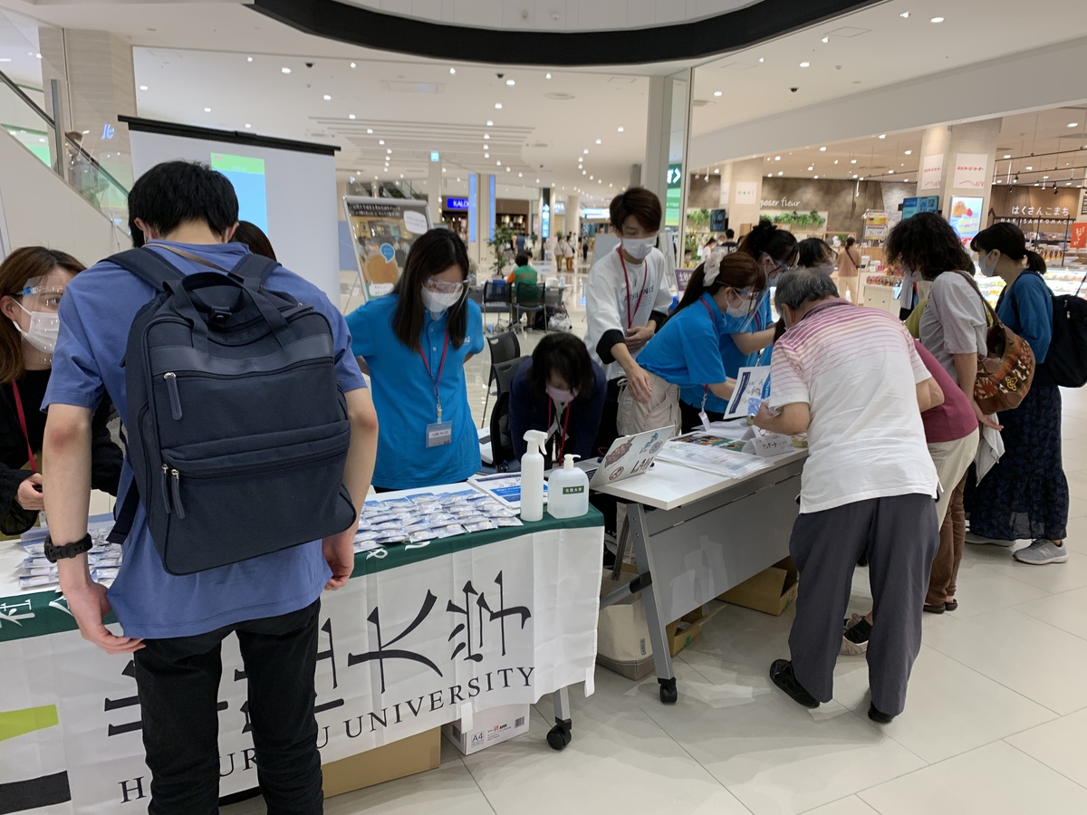 本学医療保健学部の髙橋純子教授、清水芳行教授及びボランティアサークル「ライジング・サン」の学生・有志11名は、9月4日(土)イオンモール白山で、石川県主催の「いしかわ防災キャンペーン」に出展しました。
