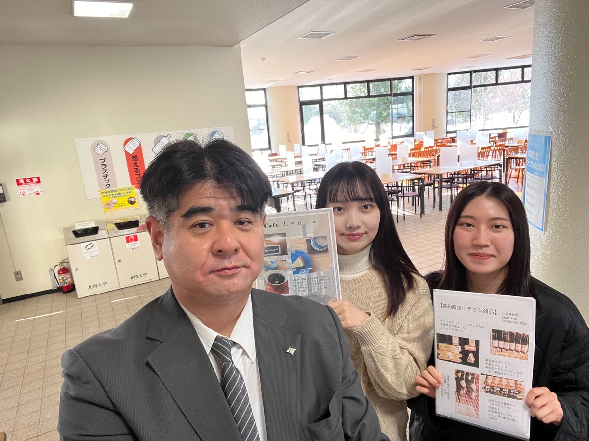 また、地元の新製品や湯涌温泉にしかないものを写真やチラシ等で北陸大学で広報活動することを企画し取り組んでいます。