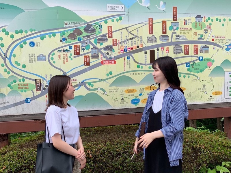 企業や地域の課題解決活動を行う経済経営学部プロジェクト型サークル「北大マネジメント塾」が、湯涌温泉街の地域活性化について、昨年9月に続いて2回目の調査を行いました。調査は同学部の酒井さん、藤井さん、顧問の森田准教授が現地に出向き、湯涌温泉街で働いている方々や湯涌観光組合の局長にお話を伺ったほか、実証実験中の金沢駅と湯涌温泉を結ぶ観光周遊バス「湯涌ワクワクライナー」に乗り、課題である目的地までの移動手段について調査しました。