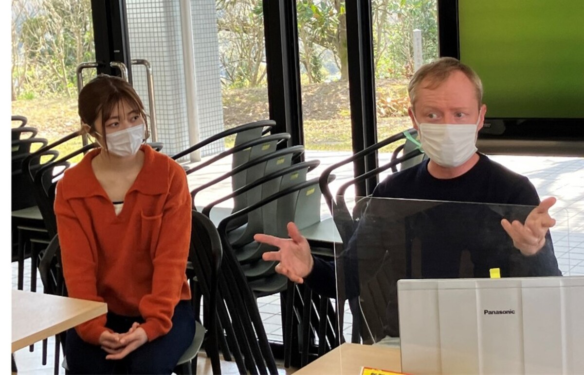 同学科2年の鷲田拓未さんは参加後、「ネイティブの先生が優しくサポートしてくれたので、楽しく参加することができた」と感想を述べていました。