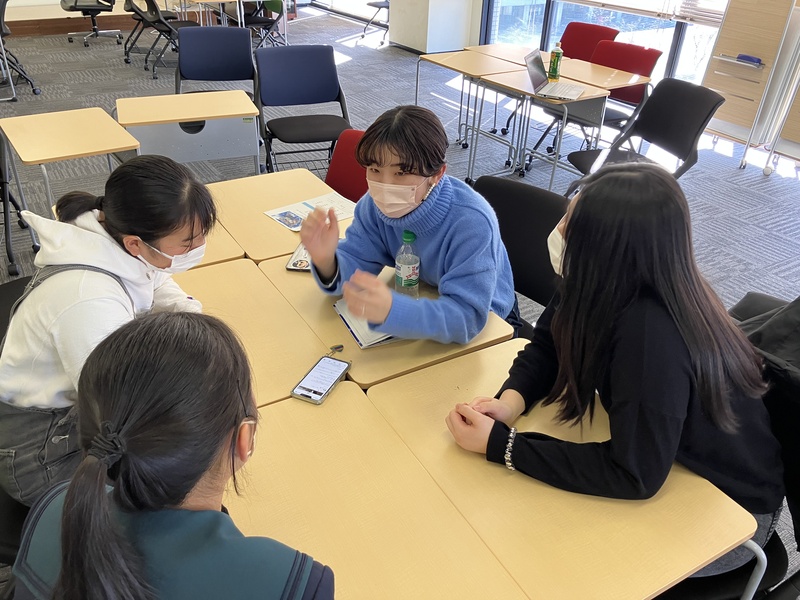 また、「トビタテ!留学JAPAN」の対象学生に選定され、2022年8月から9月にカンボジアで音楽教育支援活動を行った、本学国際コミュニケーション学部4年次生の廣田 美羽さんが先輩学生としてワークショップなどに参加し、自身の体験などを交えながら海外での活動の必要性を高校生に伝えました。