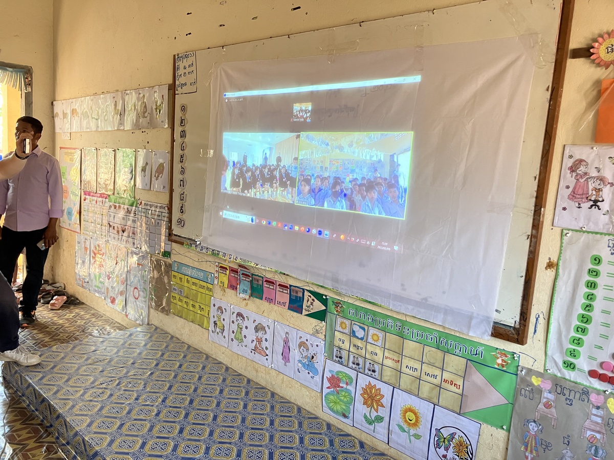 交流会では、認定NPO法人日本カンボジア文化産業振興会が支援するプレアヴィヒア州スラエム村のテチョウ小学校と幼保連携型認定こども園光こども園とをオンラインでつないで、子どもたちが交流をしました。