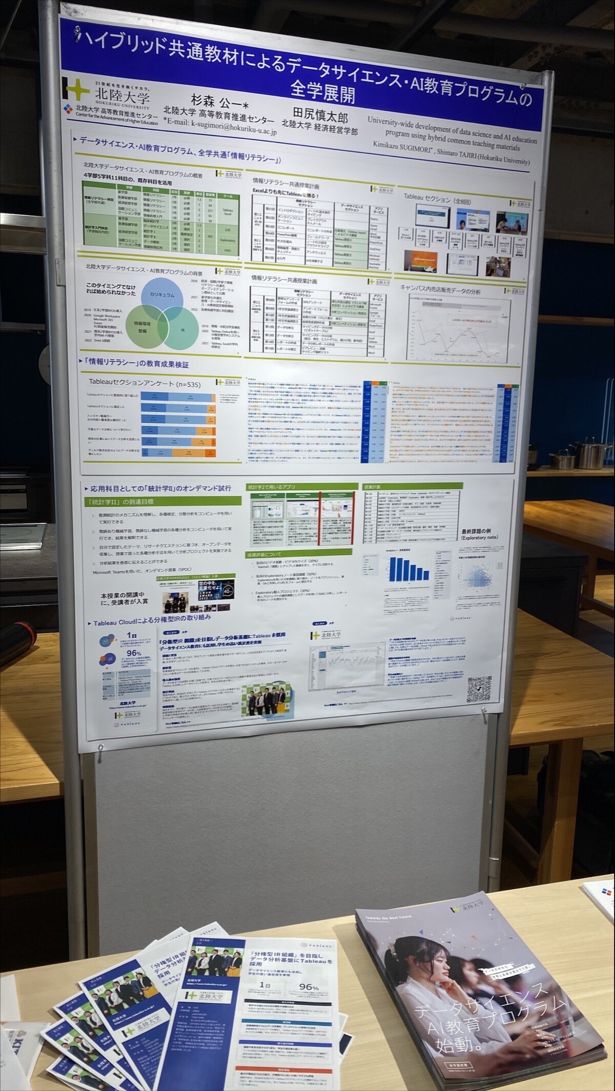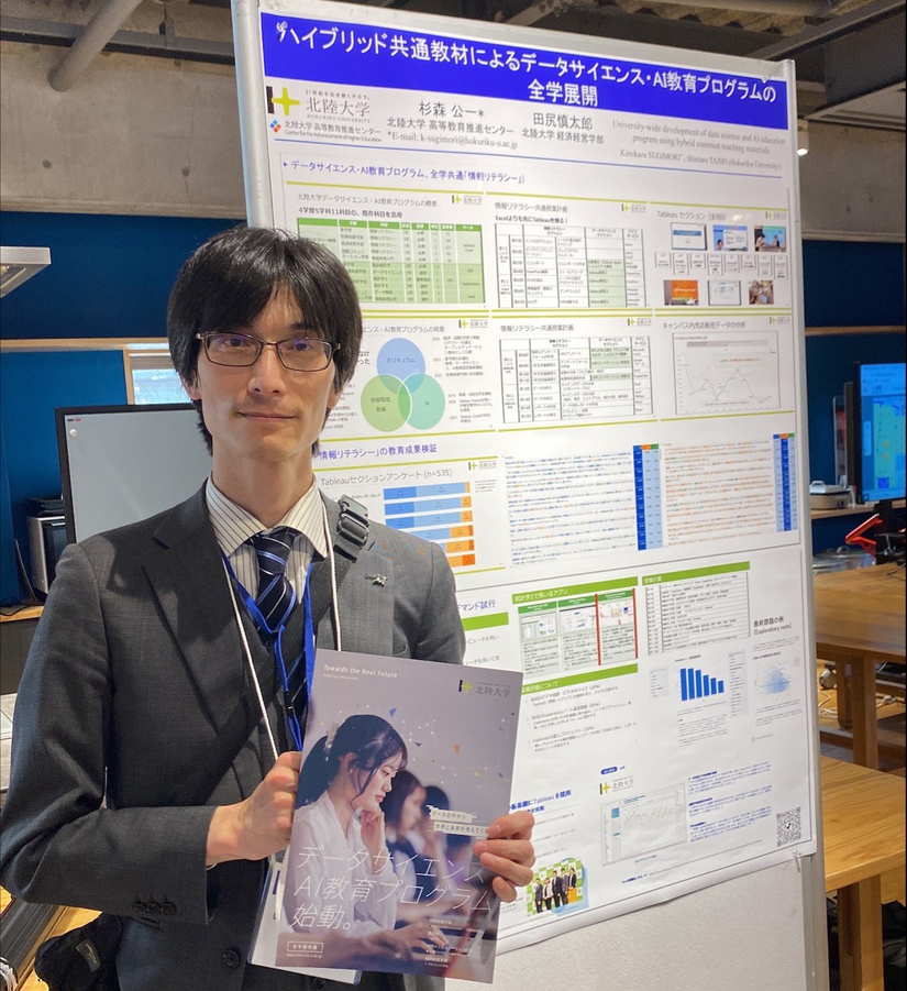 杉森教授は、「ハイブリッド共通教材によるデータサイエンス・AI教育プログラムの全学展開」についてポスターセッションを行い、本学の取り組みについて来場者に紹介しました。