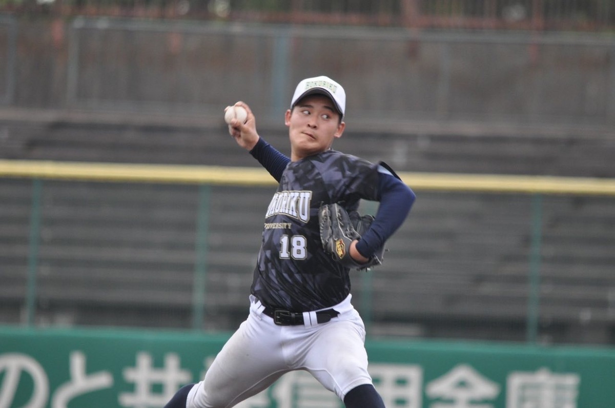滋賀県長浜市出身の藤井さんは滋賀県立伊香高校を卒業後、2021年に本学に入学し、1年生から公式戦デビューを果たしました。“三振を取れる投手”ということが最大の魅力であり、エースとしてチームを牽引しました。