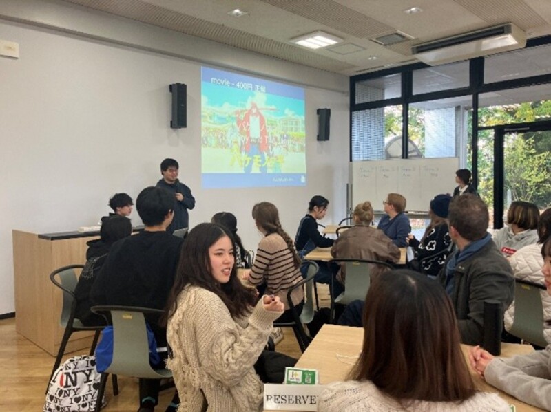 11月27日(水)、石川県日本語・日本文化研修プログラムに参加しているオーストラリア国立大学の学生4名を本学に招き、MOGUMOGU SA(学生アシスタント)企画による国際交流イベントを開催しました。後期に入ってからは初となる国際交流イベントとなり、本学の学生も奮って参加してくれました。