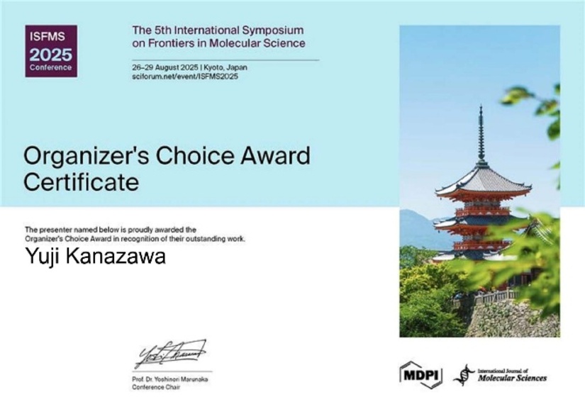 ウェルビーイング・リサーチチーム(コア研究:身体領域)の金澤佑治准教授が研究成果を国際学会(ISFMS2025)で発表し、Organizer's Choice Awardを受賞