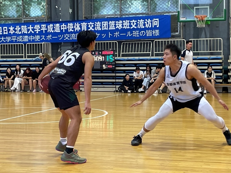 到着翌日に、首都体育学院の施設見学を行い、大規模なスポーツ設備やトレーニング環境を視察。その後、交流プログラムがスタートしました。首都体育学院との交流試合や同じ北京市内の北京体育大学との交流試合では、高さとフィジカルで勝る相手との対戦を通じて、自分たちの強みと弱みを改めて知ることができ、大変良い機会となりました。