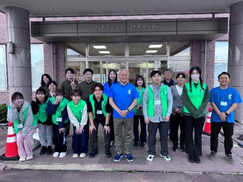 当日は、東風安生学長が来場者の皆さまにお声がけし、地域連携センター長の三浦雅一理事、薬学部の佐藤友紀准教授、医療保健学部の宮地諒講師、経済経営学部兼地域連携センターの坂口雄介助教が、各種測定コーナーや会場運営を担当しました。薬学部卒業生の薬剤師2名と学部生7名もサポートとして参加し、地域の皆さまとふれあいながら、健康づくりに取り組みました。
