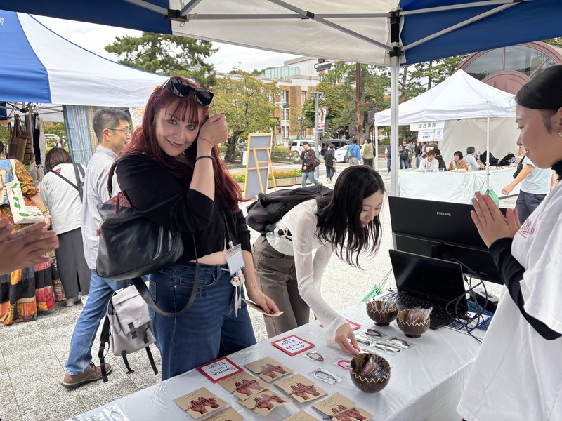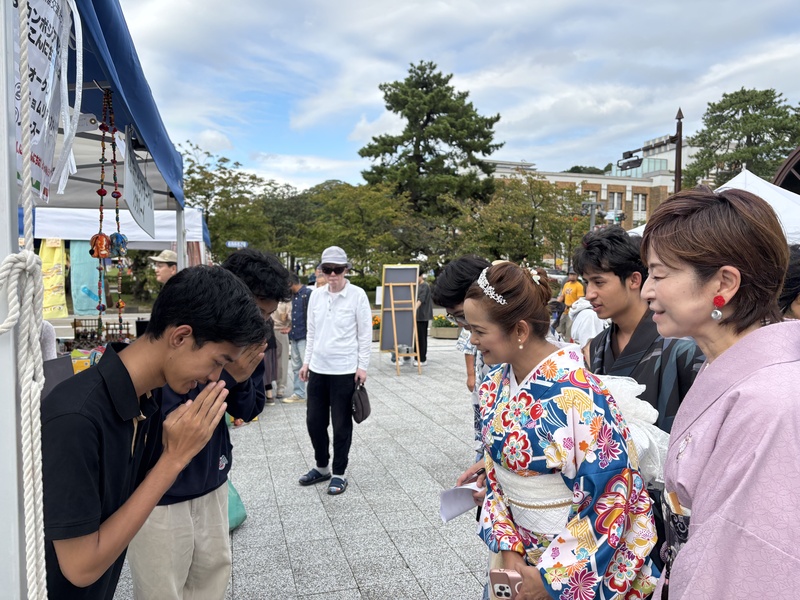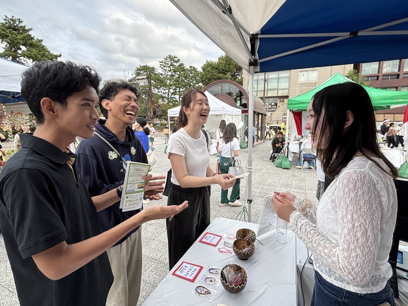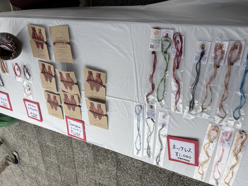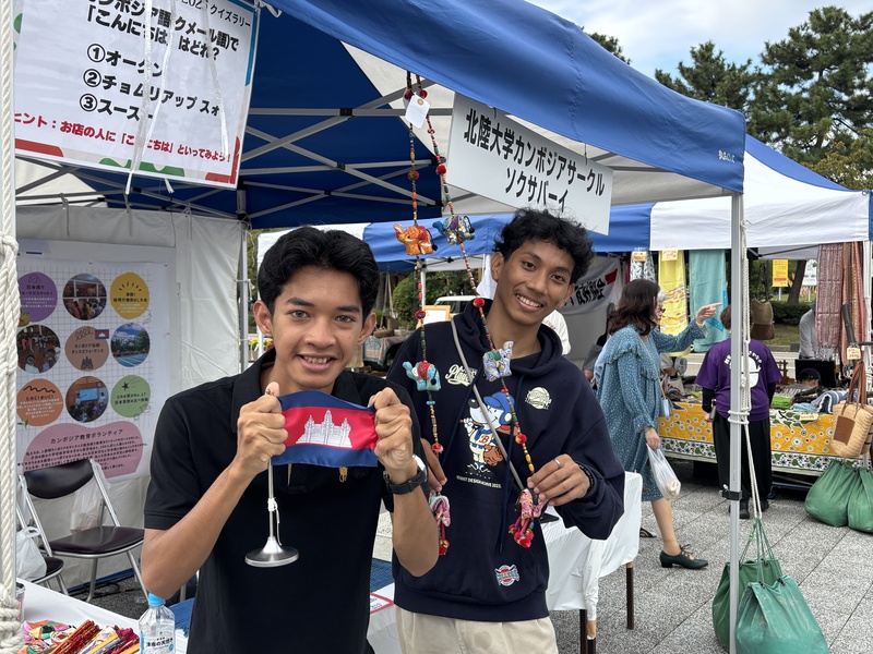 10月11日(土)12日(日)、カンボジア研修の参加学生6名とカンボジア人から留学生2名は、北陸大学カンボジア・サークル ソクサバーイとしてかなざわ国際交流まつりに出店し、カンボジアの子供たちが作製したクエサダイ(ミサンガ)などを販売しました。