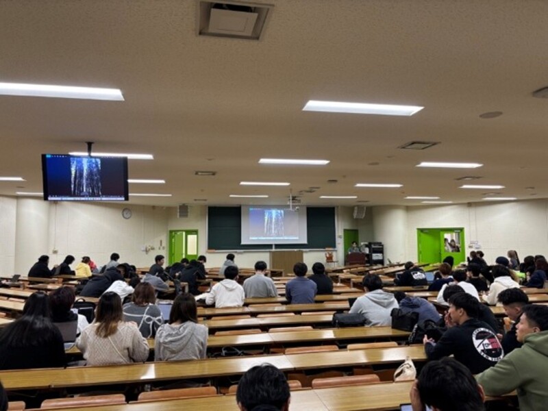 10月28日(火)、経済経営学部1年生向け授業「SDGs2」(履修者139名)において、本学卒業生の中﨑楓さんを講師に招き、特別授業を実施しました。