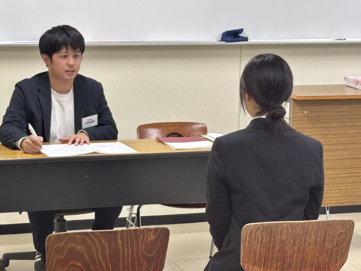 学生たちは複数企業の面接を経験し、業界ごとのに求められる視点や評価ポイントを理解するだけでなく、実践的なコミュニケーション力や自己表現力を身につける機会となりました。また、面接後には人事担当者から回答内容や言葉遣いなどについて具体的なアドバイスもあり、学生にとって大きな学びとなりました。