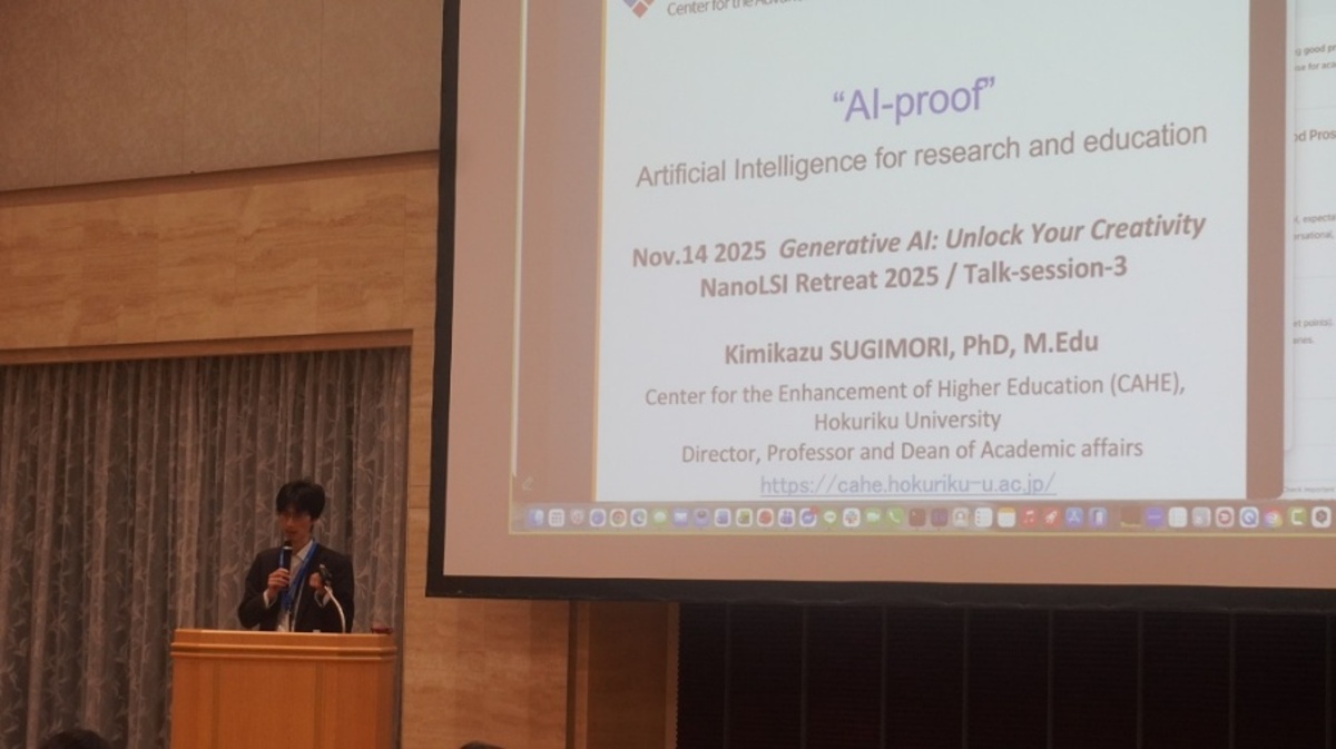 11月13日(木)~14日(金)、ホテルアローレ(加賀市)にて、ナノ生命科学研究所(NanoLSI)による初のリトリートイベント「NanoLSI Retreat 2025」が開催され、高等教育推進センター長の杉森公一教授が、ゲストスピーカーとして登壇しました。