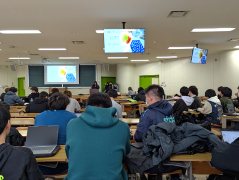 白山市との連携授業は11月25日、12月2日、12月9日、12月16日の4回にわたり実施。初回の11月25日に白山市企画課の担当者が市の概要や課題について説明し、その後2回の授業でグループごとに振興策を検討。最終回となる12月16日に担当者に向けプレゼンを実施しました。プレゼンを実施したのは全34チーム中、事前に選抜された10チームで、白山市のSWOT分析(強み、弱み、機会、脅威)などを踏まえ、スノーシュー体験など四季を通じた体験ツアーの提供や空き家を利用した古民家カフェの経営、米づくり体験、SDGs研修旅行の誘致など、さまざまな振興策が提言されました。