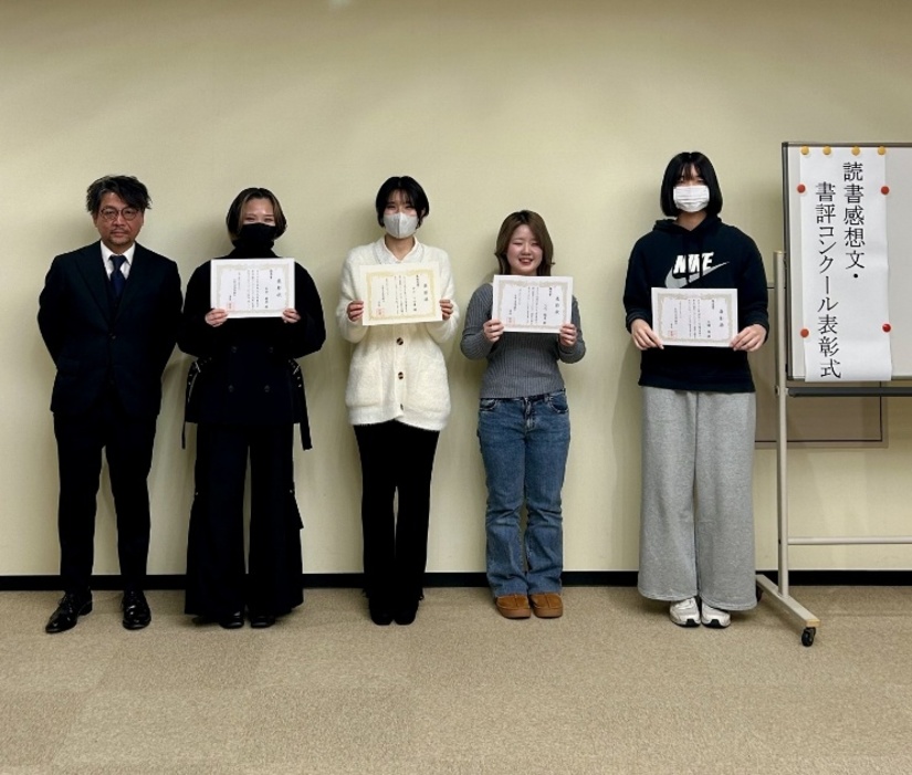 第25回読書感想文・第7回書評コンクール表彰式を開催 Category 薬学部 薬学科 医療保健学部 医療技術学科 医療保健学部 理学療法学科 経済経営学部 マネジメント学科 経済経営学部 経済学科 国際コミュニケーション学部 国際コミュニケーション学科 国際コミュニケーション学部 心理社会学科 大学院 医療保健学研究科 医療保健学専攻 ウェルビーイングリサーチチーム 研究活動 地域連携 健康未来社会実装センター ボランティア 国際交流 留学生 留学レポート データサイエンス 教職課程 ニュース クラブ・サークル 入試情報 オープンキャンパス 就職、資格 広報 イベント 案内 50周年記念事業 能登半島地震 全てのカテゴリー ニュース / 2025.12.22 update 12月18日(木)、第25回読書感想文・第7回書評コンクール表彰式が行われ、最優秀賞・優秀賞を受賞した学生が参加しました。 学生の友人も駆けつけ、受賞を喜びあっていました。 ニュースの直近のトピックス 第25回読書感想文・第7回書評コンクール表彰式を開催 高等教育推進センター長 杉森公一教授がNanoLSI Retreat 2025に登壇 国際交流センター長 横田隆志教授が「日本語教室開設に向けた研究協議会」で講演 医療保健学部 西村卓朗助教の研究課題が「大学の新技術、研究活動への奨励金」に採択 一覧をみる