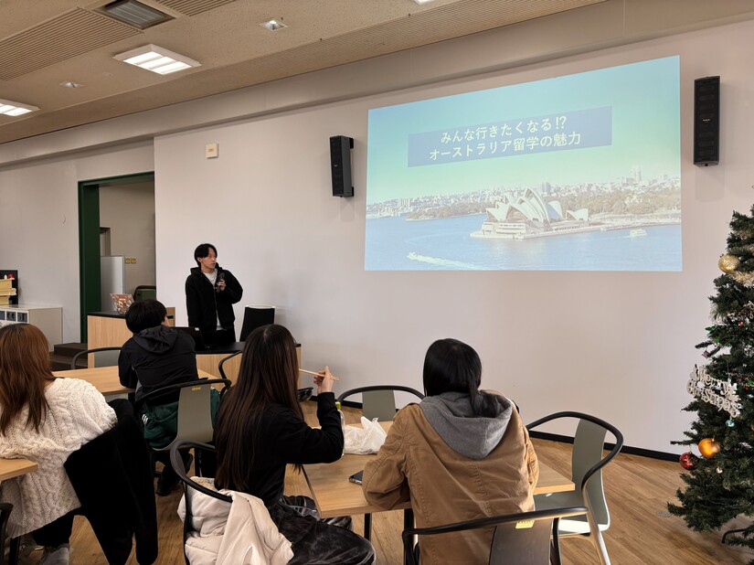 12月18日(木)、国際コミュケーション学科から、オーストラリア、ニュージーランド、マレーシアに留学した学生が、留学中の研究成果と留学生活について発表会を開催しました。