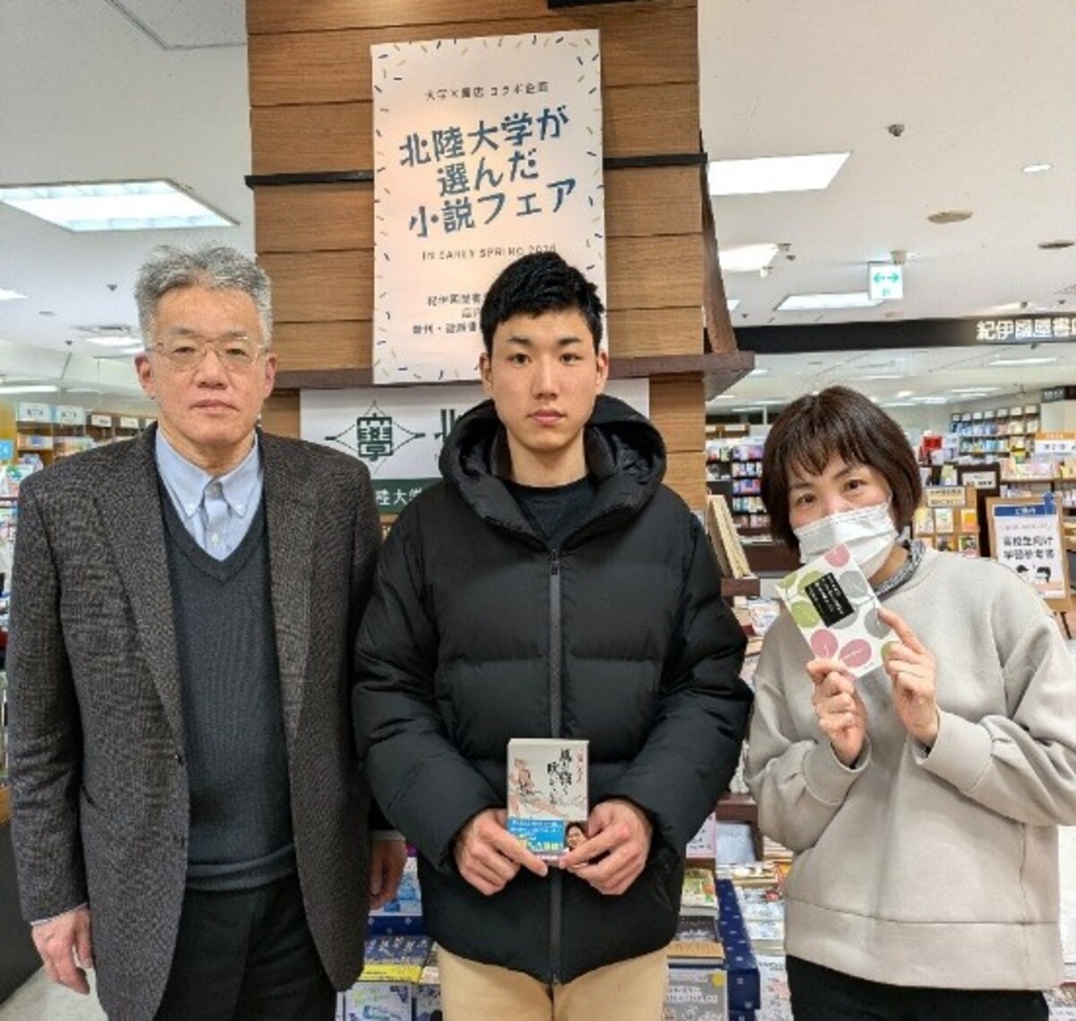 紀伊国屋書店金沢大和店にて選書フェアを開催 Category 薬学部 薬学科 医療保健学部 医療技術学科 医療保健学部 理学療法学科 経済経営学部 マネジメント学科 経済経営学部 経済学科 国際コミュニケーション学部 国際コミュニケーション学科 国際コミュニケーション学部 心理社会学科 大学院 医療保健学研究科 医療保健学専攻 ウェルビーイングリサーチチーム 研究活動 地域連携 健康未来社会実装センター ボランティア 国際交流 留学生 留学レポート データサイエンス 教職課程 ニュース クラブ・サークル 入試情報 オープンキャンパス 就職、資格 広報 イベント 案内 50周年記念事業 能登半島地震 全てのカテゴリー イベント / 2026.01.28 update 紀伊国屋書店金沢大和店にて、1月27日(火)~2月28日(土)の期間中、本学の学生・教職員が選書した本を展示する選書フェアを開催しています。 約40冊程度をおすすめポイントを記載したPOPとともに展示しています。テーマは「北陸大学が選んだおすすめ小説」です。 近くにお越しの際は、是非足を運んでみてください。 イベントの直近のトピックス 紀伊国屋書店金沢大和店にて選書フェアを開催 学生サークルが小学生を対象にクリスマスイベントを開催 〈学生レポート〉オーストラリア国立大学と国際交流イベントを開催 第25回読書感想文・第7回書評コンクール表彰式を開催 一覧をみる