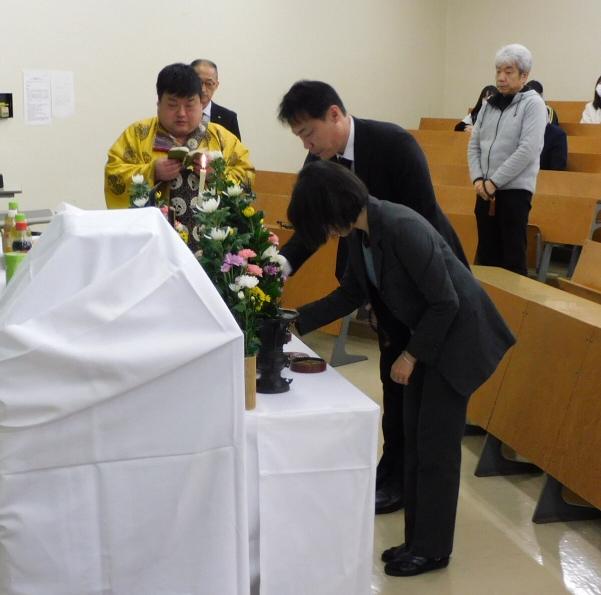 最後に参列者約60名全員で実験動物の冥福を祈り、焼香を行いました。