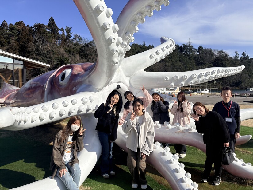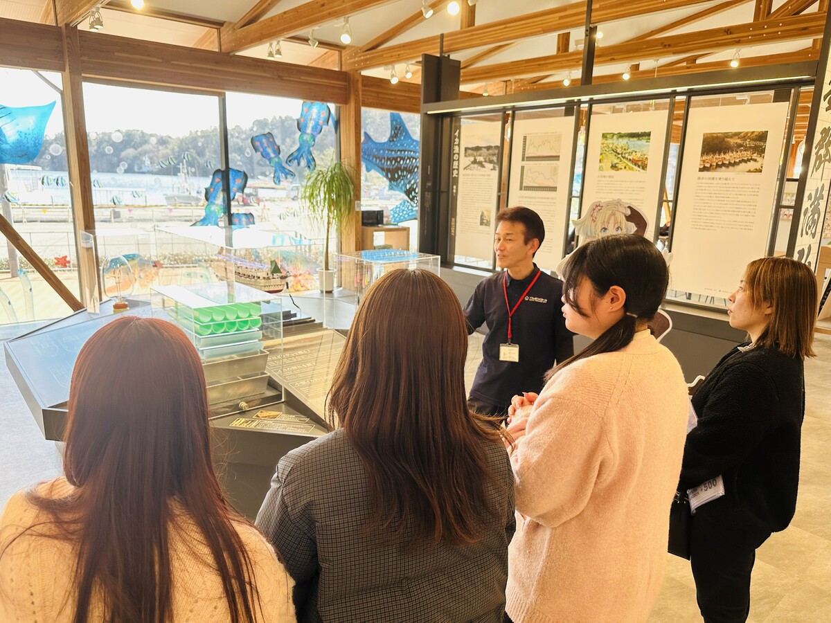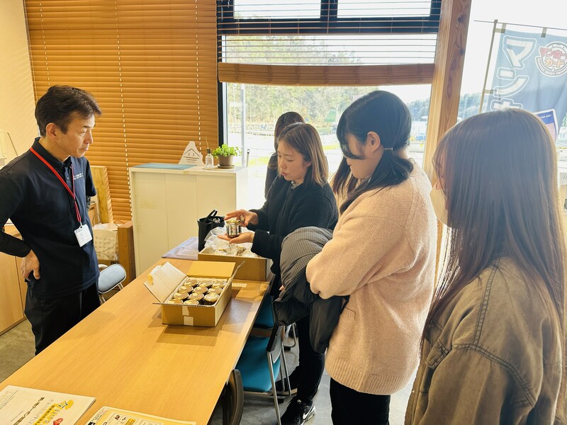 地域や企業と連携しながら地域創生に取り組むサークル「北陸大学SIGHT」は、2月20日(金)、奥能登食材流通機構の担当者とともに、イカの駅つくモールを訪問しました。