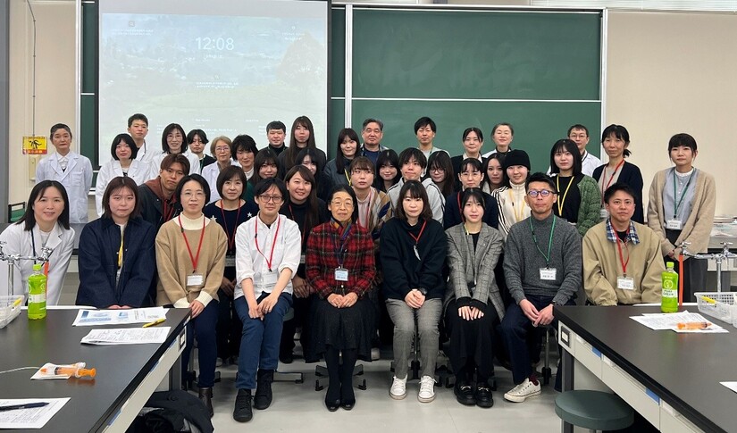 地域連携センター主催の薬剤師を対象とした「第8回簡易懸濁法実技セミナーin金沢」が3月8日(日)、薬学キャンパス実験科学棟において開催され、全国から計30名が参加しました。冒頭に東風学長よりご挨拶をいただいた後、セミナーは、「製剤学の基礎は臨床薬剤師の力の見せどころ」のテーマのもと、簡易懸濁法を始められた倉田なおみ先生(昭和医科大学薬学部客員教授)による「簡易懸濁法の基本と製剤学」、「内服薬嚥下障害とは(経口からの薬の投与)」の講義と2つの実技実習を行いました。実技実習では、グループに分かれ、倉田先生とファシリテーターの先生方の指導の下、簡易懸濁法に適した医薬品、資材の選択、投与方法および注意点等について実践を通して詳しく学びました。参加者からは質問も多く、大変熱心に参加している様子が見られ、有意義なセミナーとなりました。